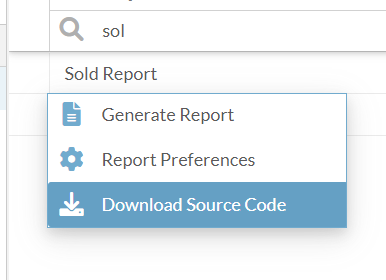 Open up the reports menu and using the ... context menu download the source code.